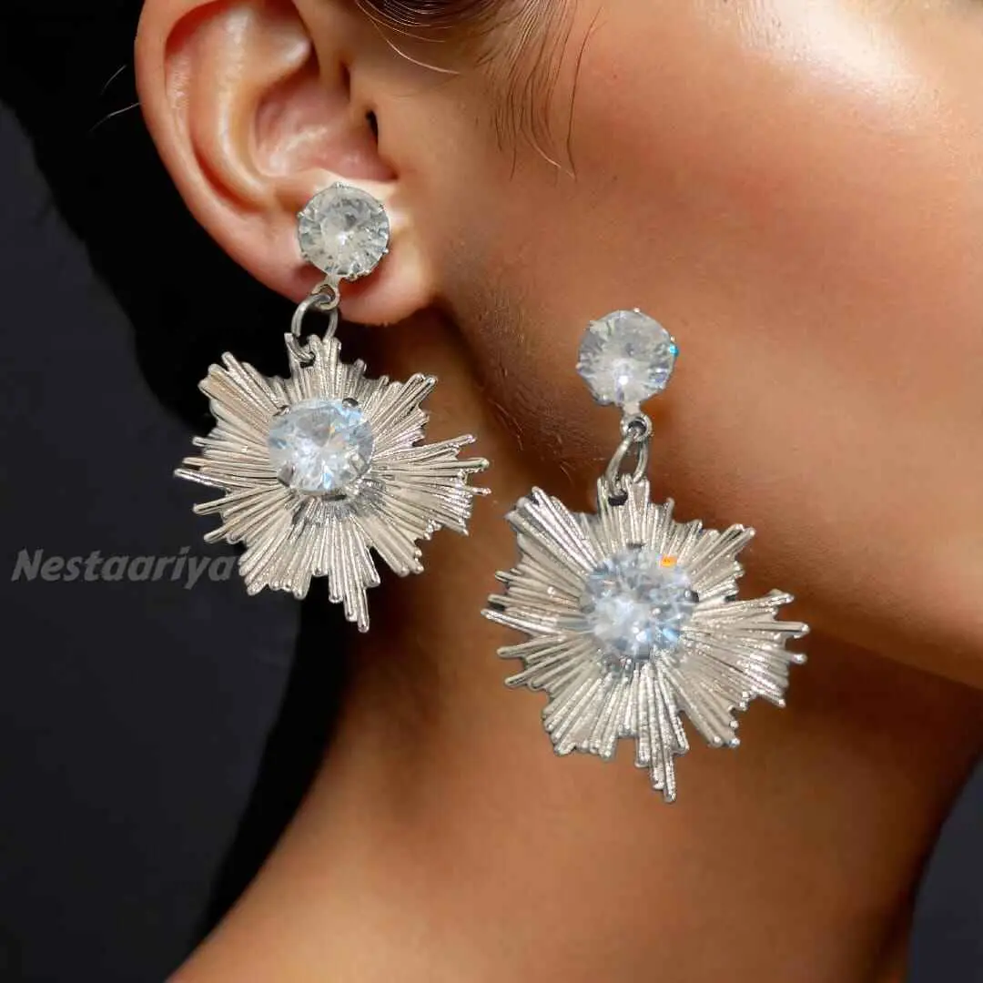 Step into the spotlight with the Ethereal Earrings (Silver)—a masterpiece of celestial beauty and modern sophistication. With an asymmetric, starburst-inspired design and dazzling crystal centerpiece, these earrings radiate an otherworldly charm. Whether you’re dressing up for a grand occasion or elevating your everyday look, this shimmering silver finish ensures you shine effortlessly.