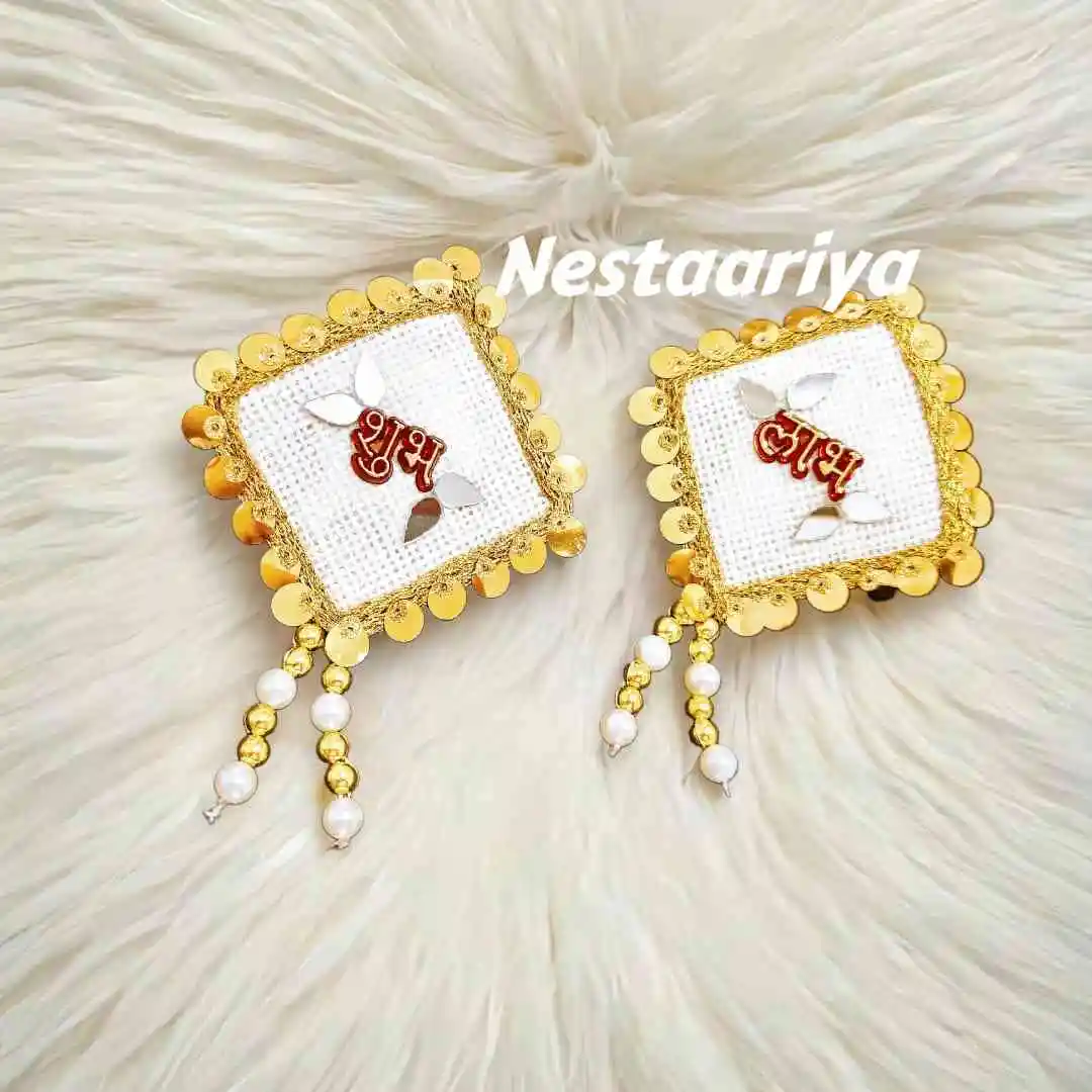 Bring home the sparkle of tradition with this “Shubh Labh 3” door hanging! Adorned with golden and off-white pearls, mirror sequins, this festive charm is all about good vibes and bright lights. Perfect for welcoming joy and prosperity during any celebration, or giving it as a return gift, it adds a glowing touch to your doorstep with a dash of elegance and fun!