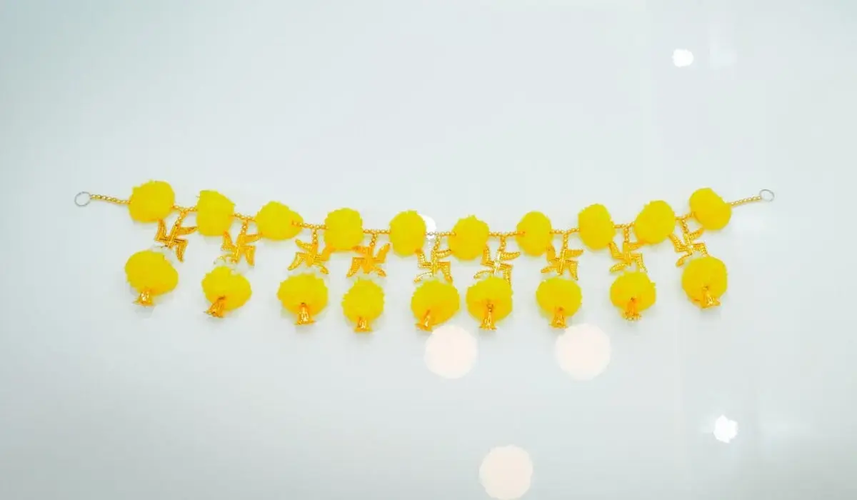 The Toran comes with two sturdy rings attached, making it easy to hang and securely place on your door. Ideal for festive occasions or daily use, this Toran enhances your entrance with beauty and positive vibes.